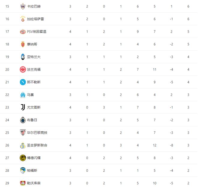 其他的比賽戰(zhàn)況如下,布拉格斯拉維亞0-3阿森納;馬德里競(jìng)技3-1圣吉羅斯聯(lián)合;托特納姆熱刺4-0哥本哈根;尤文圖斯1-1葡萄牙體育;那不勒斯0-0法蘭克福;博德閃耀0-1摩納哥;奧林匹亞科斯1-1埃因霍溫。