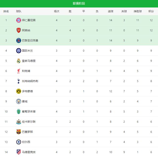 利物浦1-0皇馬+大巴黎1-2拜仁!歐冠最新積分榜:阿森納4輪全勝